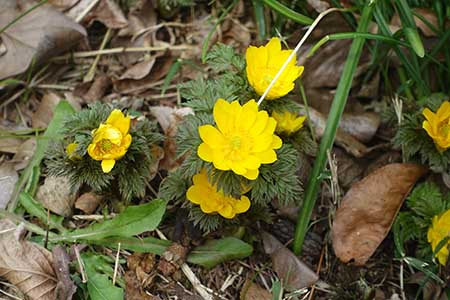 放し飼いの福寿草、今年もよく咲いてくれた(2月13日撮影)