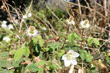 野のイチゴ花盛り。3月16日、近所で撮影。