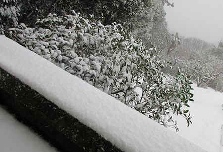 今(8日午前10時半)、庭の地面がうっすら白い。