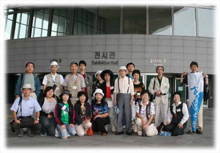 えへへ、韓国ツアーがどうだったかって? よくぞ聞いてくださいました。妻木晩田遺跡の保存が決まった年に始めた毎月1度の市民講座「むきばんだやよい塾」は、今年で8期になります。この塾の修学旅行で韓国に行くことになったきっかけは、千夏さんが「すっげぇハンサム」と記憶する釜山大学の申敬_(シン・ギョンチョル)先生です。先生は、保存問題で揉めていた妻木晩田遺跡を訪れ、「この遺跡は、韓国の古代史にとっても大切な遺跡です!」と日本のマスコミの前で訴えてくださり、さらに700名もの韓国研究者の保存要望署名を集めてくださったのです。それで、感謝をこめて、釜山大学を表敬訪問しようっていうことが始まりでした。
