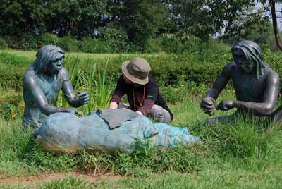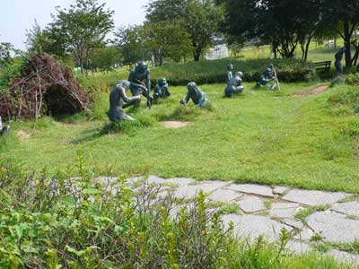 そういう意味で、歴史小説は、復元された遺跡と似てるのかなと思います。韓国の全谷里遺跡という旧石器時代の遺跡公園では、広い敷地をフィールドにして、等身大のブロンズ製の旧石器人たちがあちこちにいて、狩りをしていたり、動物を解体していたり、池で魚を捕まえていたりしています。ホントかな?と思うより先に、メッチャ楽しかったです。旧石器時代って、なかなかイメージしにくいけれど、あんなふうに見せてくれたら、子どもたちも考古学に親しみをもつだろうなと思いました。