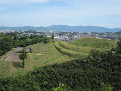 続いて遺跡側に登りました。高いところには、前方後円墳もあって、こんな解説が。