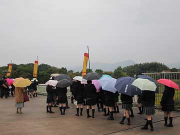 生憎の雨で修学旅行生はお気の毒
