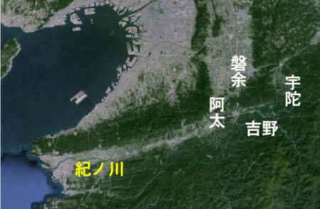 チナ それで近畿の吉野川は「紀の川(紀ノ川、紀伊川)」が代表名で、大台ケ原(奈良と三重の県境の多雨地帯)を源流に、奈良県から和歌山県へと流れていて、奈良県内だけが流域の名にちなんで、吉野川と古来呼ばれているんだってね。つまり吉野川の下流が紀の川なんだって。