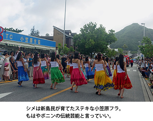 「レモン林」や「南洋踊り」など、今、小笠原の伝統芸能としてある歌や踊りは、この間にミクロネシアの島々から伝わったものだ。
