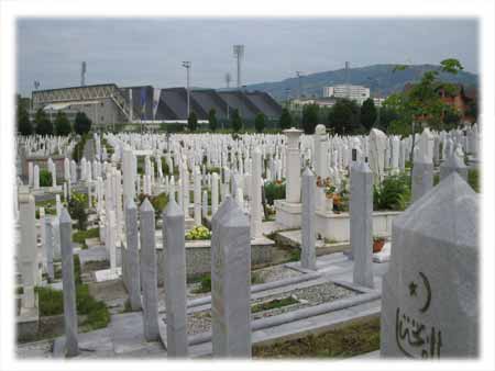 スナイパー通りではサラエボの中心部をセルビア軍がぐるりと囲み、山の中腹からボスニア人を銃や戦車で銃撃した。ボスニア人とは人口の44%を占めるイスラム教徒のことである。彼らはオスマン・トルコがボスニアを征服していた15世紀から19世紀までのあいだにイスラム化した人々で、トルコ人と同じく決して原理主義者ではない。女性の殆どはブルカもスカーフもかぶっていない。教育程度も高く、英語を話す人も多い。