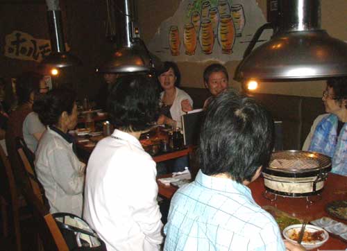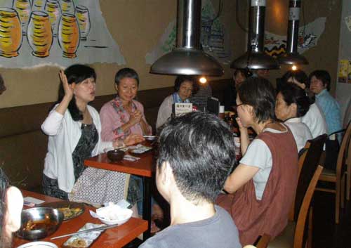 お盆の真っ最中にもかかわらず、総勢17人が集まってくれました。 中には奈良県からわざわざ夏祭りのために上京してきてくださった方もいて大感激!!! ホルモン焼きはボリュームもたっぷりで、キャベツのお変わりが自由なのが嬉しかった。 よくしゃべり、よく食べ、みなさんからパワーを分けてもらい、大いに盛り上がったのでした。 参加してくださった方々、ありがとうございます。 参加できなかった方も、ぜひ次の機会に来てくださいね。元気になること間違いなし!!! 次回は冬の慰労会で会いましょう!!!