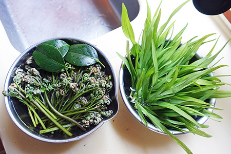 この時期、我が家の台所には野草が並ぶ。