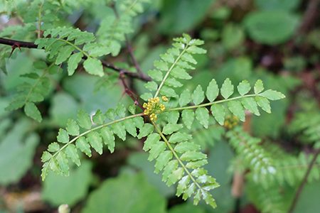 サンショにも花の季節(4月4日 庭で筆者写す)