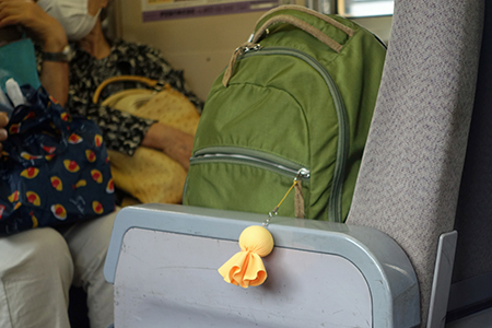 おばちゃん守るテルテル君(伊東線で、9月6日)