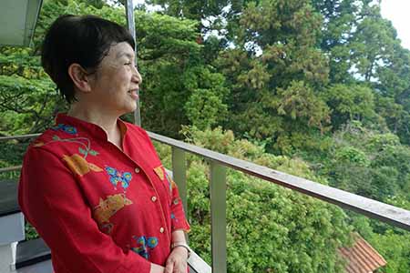 海を喜ぶ瑞穂さん(6月16日 うちのベランダで)