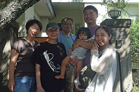 右からナッチャン、バネ、彼らの娘、チナツ君、私、チナツ君の妻。(9月16日、家人撮影)