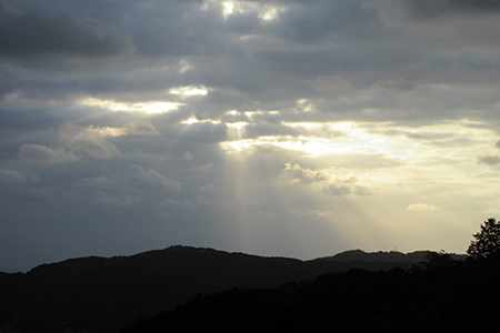 朝日も怪しい今日このごろ。(10月10日6時半窓から写す)