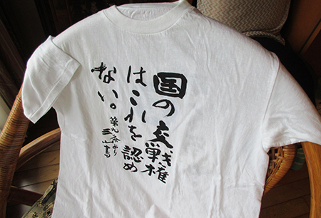1983年、参院選に立った時、ボランティアに集まった人々のなかに書家の木村三山さんがいた。仲間たちが彼のこの書をTシャツにして、選挙活動する間、これを着て働いた。