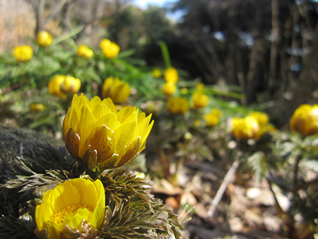 歌うフクジュソウ(うちの庭で)