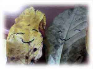 一年生の子供さんがある日、校長先生に持ってきてくれたものだそうです。画用紙には可愛い字で「こうちょうせんせい、はっぱがいっぱいだよ」とかかれてありました。 そして、葉っぱには全部マジックで顔が描いてありました。どの葉っぱもみんな笑った顔でした。校長先生はそれがとってもうれしくて、この学校みたいだなあと思われたのだそうです。